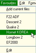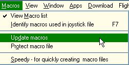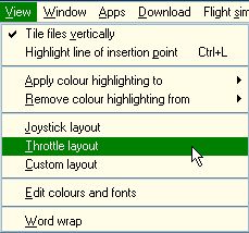 The main interface in Fox Two Pro is based around a dedicated Thrustmaster text editor, consisting of 2 tabs for your joystick file and macro file respectively. To the left of these is the macros frame, that contains your macros sorted under their respective headings you've assigned to them in the macro file. This means that you can choose to view all the macros at once, or just those that pertain to a particular macro heading, say Wingmen Comms for example. Above the files is a tool bar which accesses some of the more commonly used menu items. Down the bottom is the status bar, that's used to tell you what Foxy is up to at any particular time, what the macro definitions are for the macros selected in the macro list, the saved/modified state of the currently selected file etc. Files are colour highlighted with colours that you can customise, making the files much easier to read and can be printed out in full colour too. Independent multi-level Undo/Redo (30,000 edits for each file) ensures that you'll never be left regretting editing you didn't want, with further protection offered from automatic backup file creation and background interval file saving. The editor is a highly feature rich environment providing you with fast creation of simple right through to the most complex of files. Furthermore, because files are treated as text files, there's no danger of your files not being able to be loaded, no matter how complex they are, nor is there any danger that Foxy will corrupt them in any way. And talking about features, a scan through the menus gives you an idea as to just how dedicated Foxy is to your thrustmaster needs ... (click on each for an image) ...